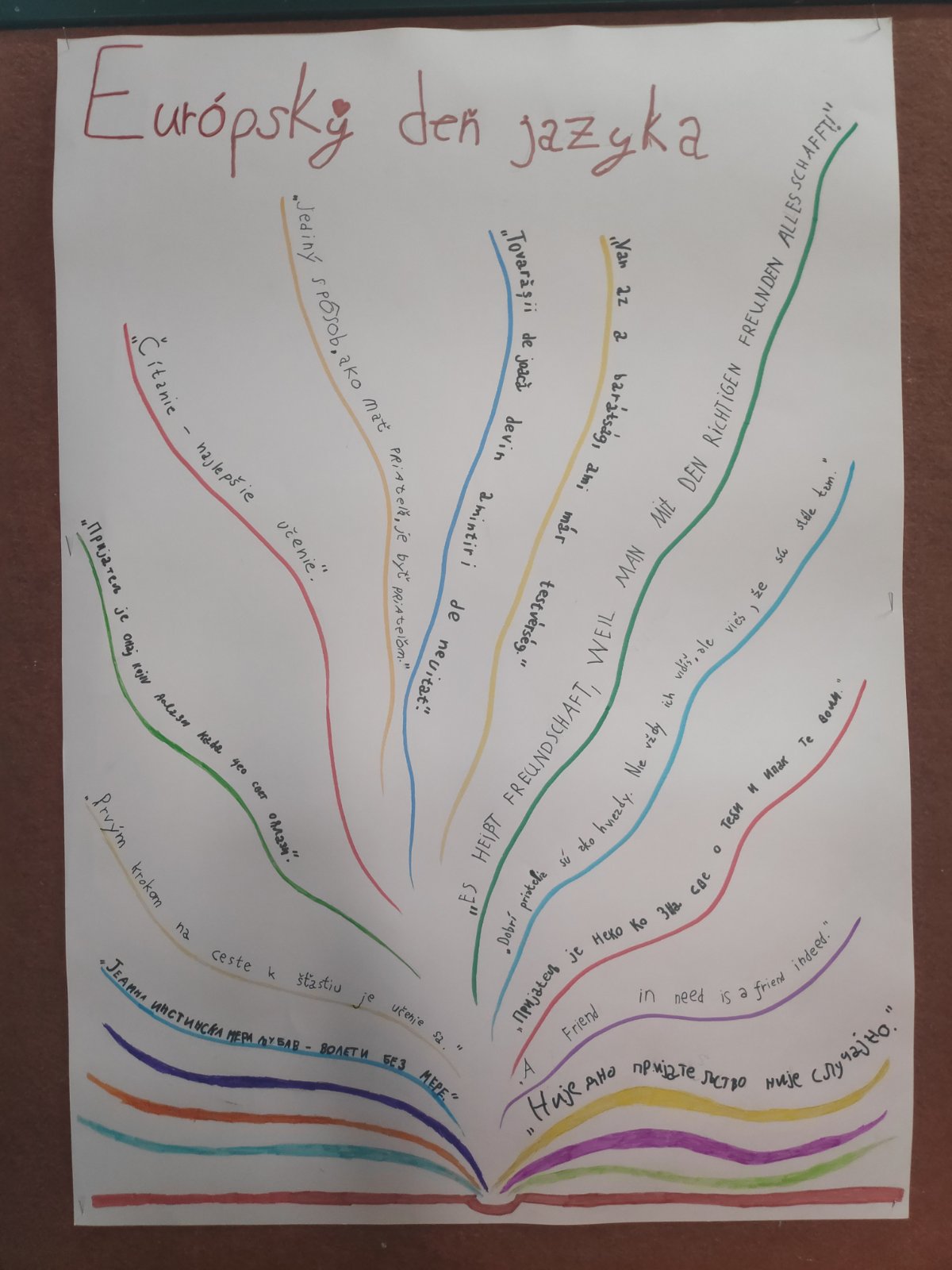 U petak 26. septembra obeležili smo Evropski dan jezika. Prva tri časa, u školskoj biblioteci naši učenici od 5. do 8. razreda izradili su dva panoa kroz koje su prikazali jezičko bogatstvo naše multinacionalne sredine, kao i bogatstvo jezika koji se izičavaju u našoj osnovnoj školi - slovački, srpski, engleski i nemački!